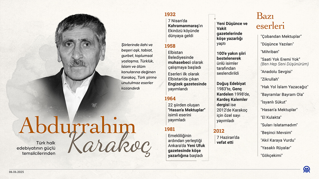7 Haziran 2025 DoğuşGündem, Kültür & Sanat0 PaylaşTweetleWhatsAppŞiirlerinde ilahi ve beşeri aşk, tabiat, gurbet, toplumsal yozlaşma, Türklük, İslam ve ölüm konularına değinen Karakoç, Türk şiirine unutulmaz eserler kazandırdı. PaylaşTweetleWhatsApp