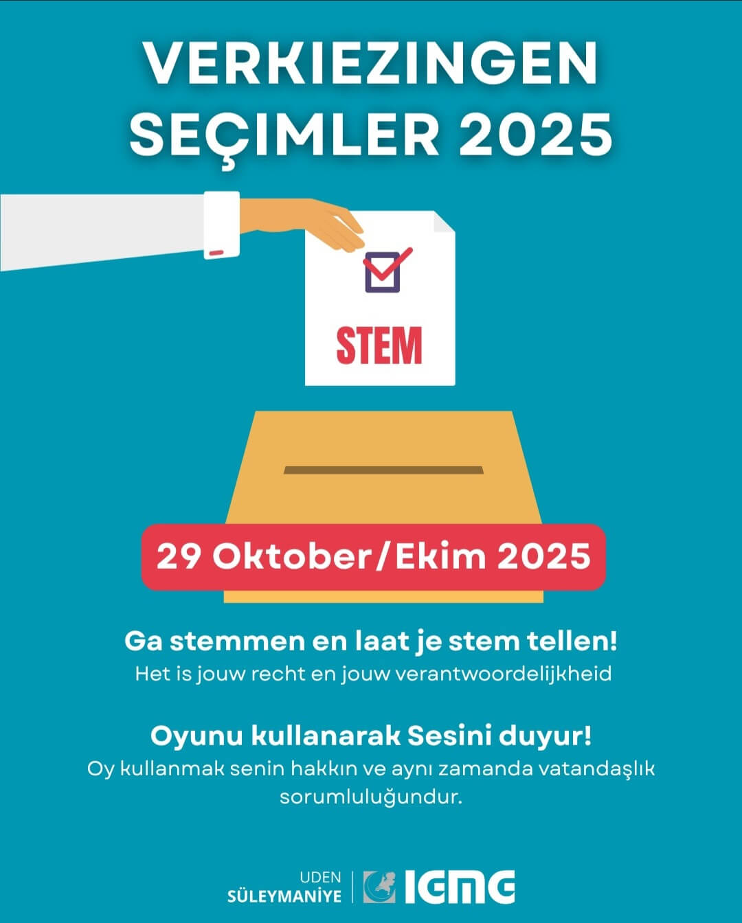 Hollanda’da birlikte yaşadığımız bu güzel ülke, bizlere birçok imkân sunuyor. Ancak bu imkânların adil ve eşit şekilde herkese ulaşabilmesi için demokratik haklarımızı kullanmamız şart. Önümüzdeki genel seçimler, sadece siyasi partilerin yarıştığı bir süreç değil; aynı zamanda bizlerin sesini duyurabileceği, haklarımızı savunabilecek temsilcileri seçme fırsatıdır.