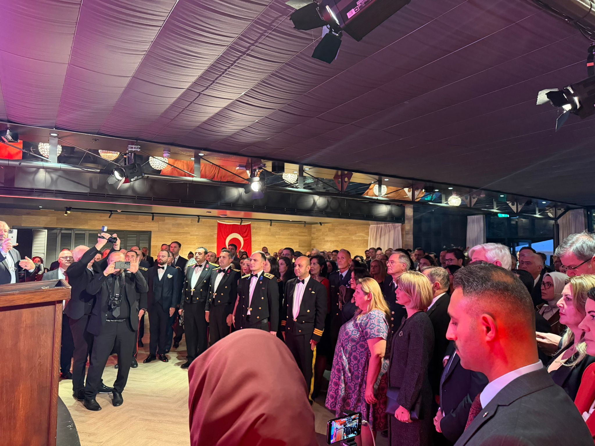 Resepsiyon, saygı duruşu ve İstiklal Marşı’nın okunmasıyla başladı.