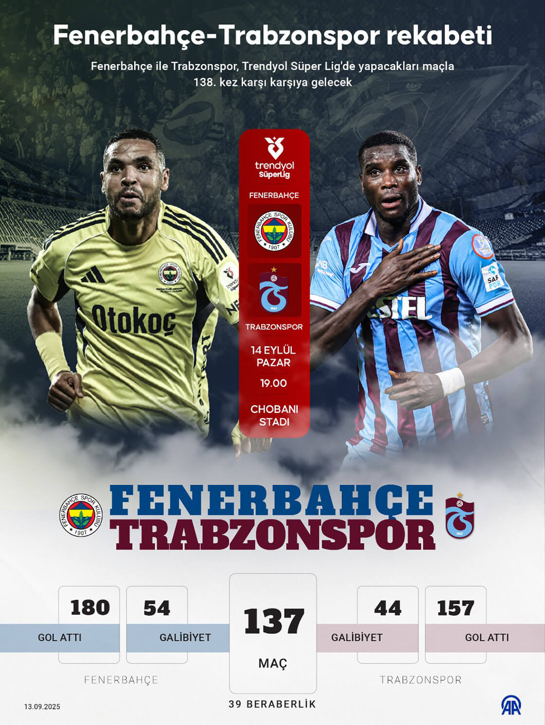 Türkiye Futbol Federasyonu (TFF), Trendyol Süper Lig’in 5. haftasında yarın oynanacak Fenerbahçe-Trabzonspor ve Gaziantep FK-Kocaelispor maçlarının başlama saatinde değişikliğe gitti.