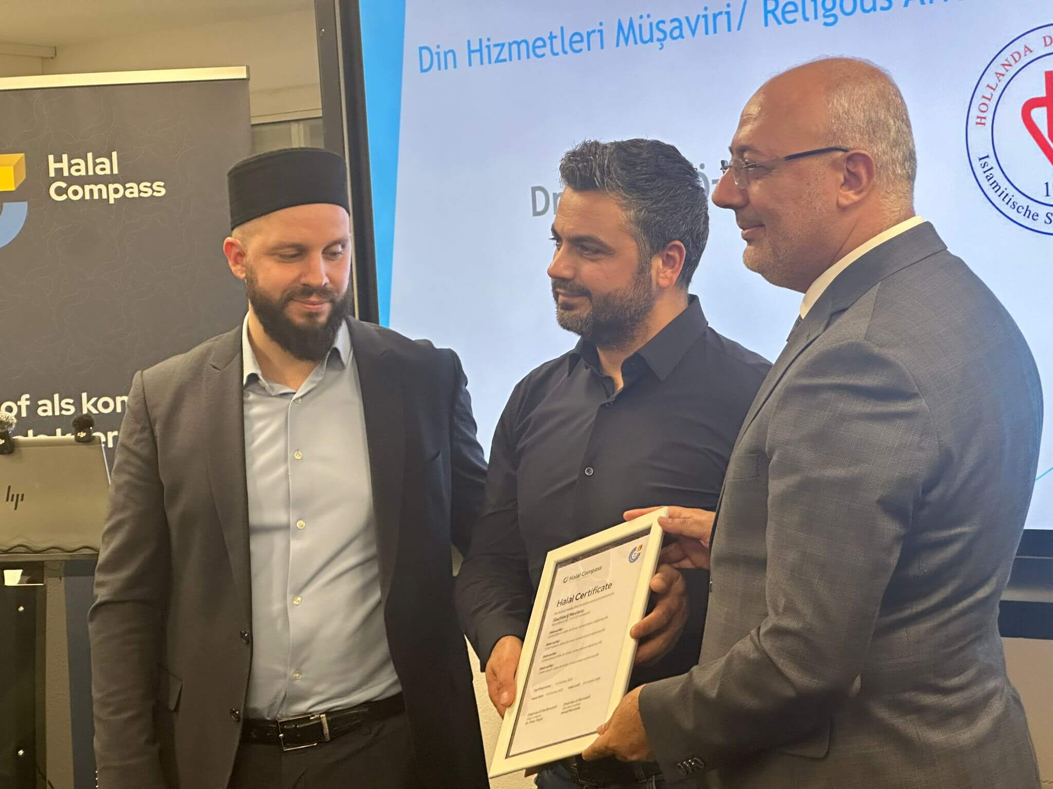 Tijdens de bijeenkomst werd aan Osman Kılıç, eigenaar van Mevlana Slachthuis, het eerste symbolische halal­certificaat uitgereikt.