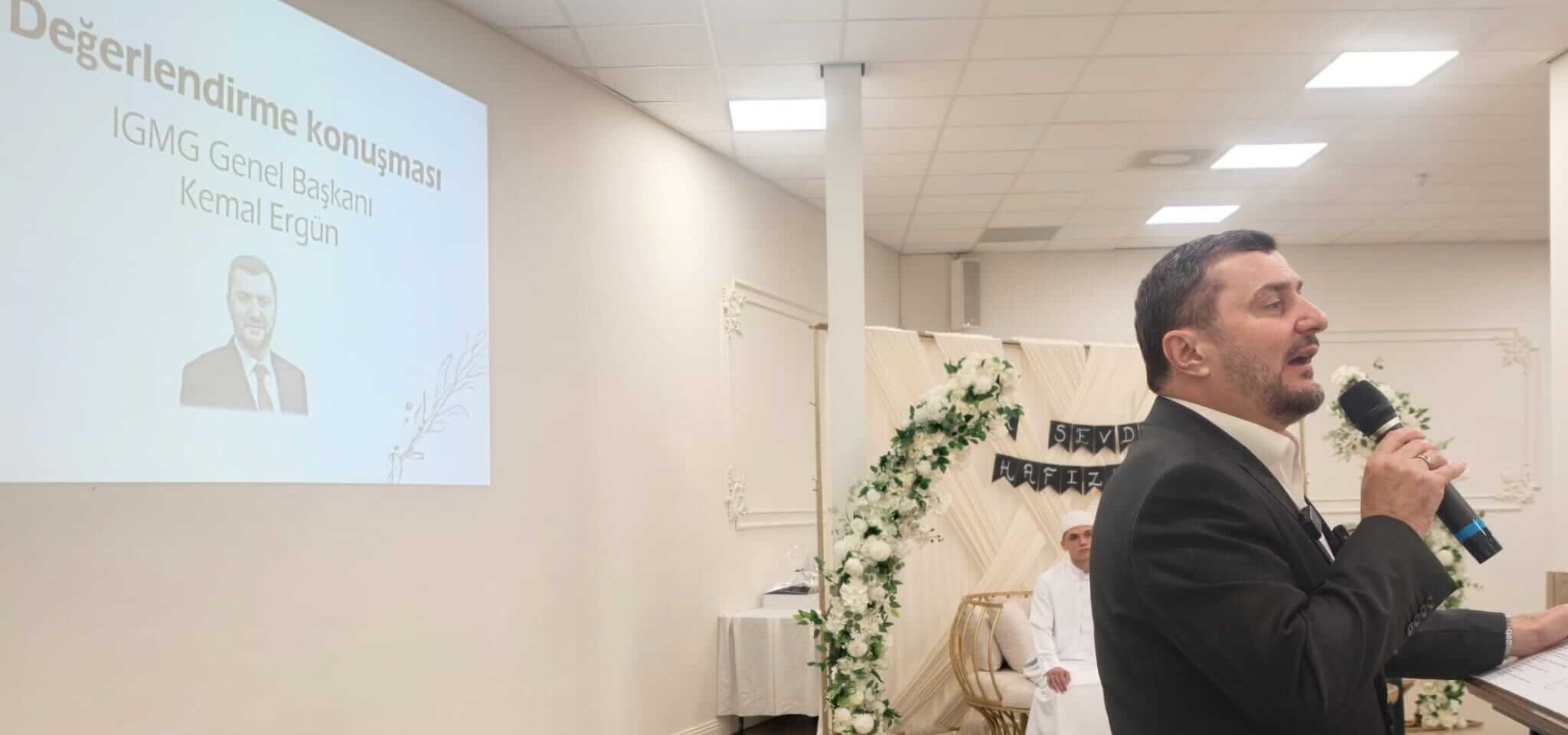 IGMG Genel Başkanı Kemal Ergün bu özel günde hafızlık eğitim alan talebeleri yalnız bırakmadı ve hem onlara hem de davetlilere hitap etti. Ergün konuşmasının ardından hafızların diplomalarını takdim etti.