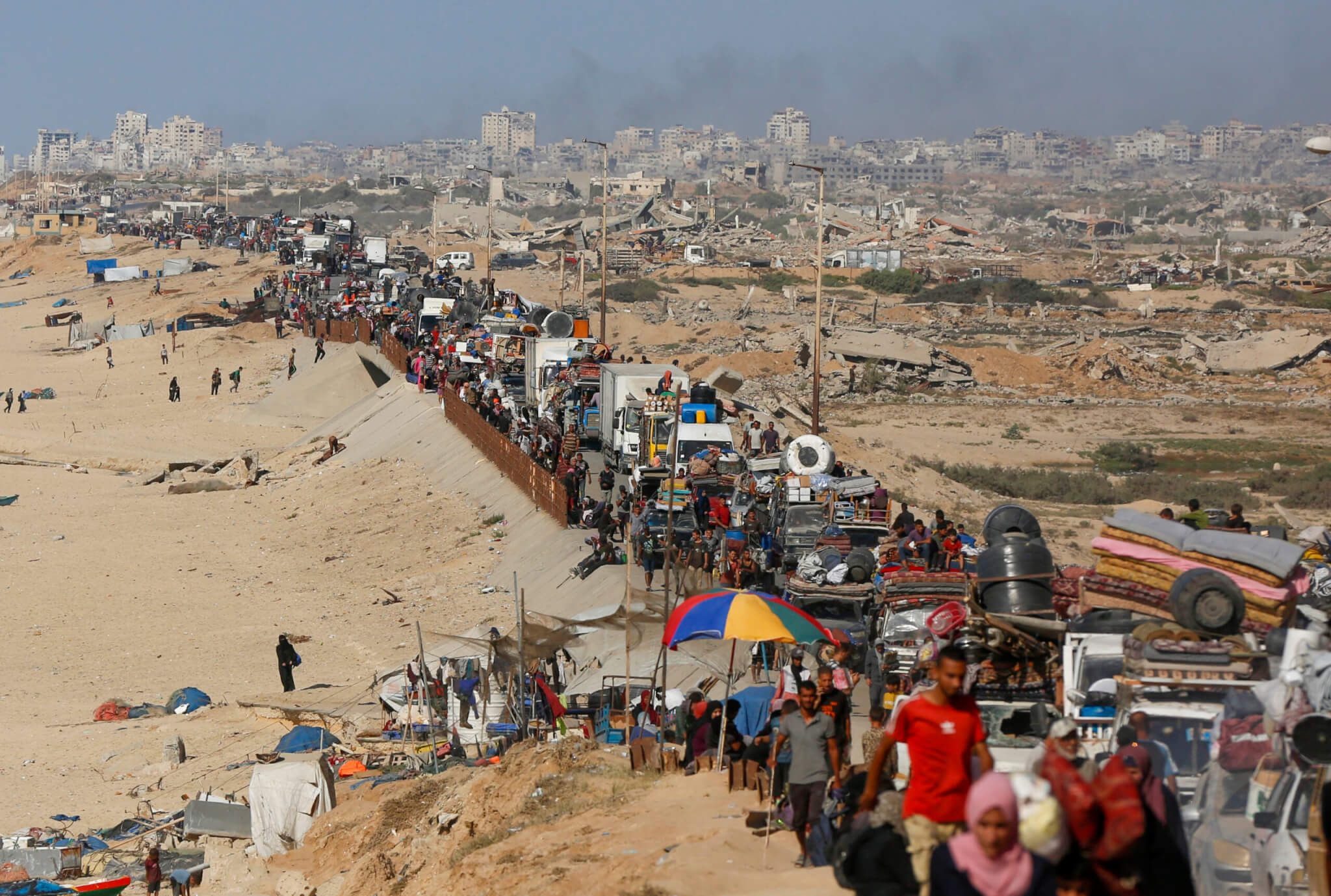 İsrail ordusunun Gazze Şeridi’nin kuzeyindeki bölgelere yönelik yoğun saldırıları ve zorunlu tahliye uyarıları nedeniyle Filistinliler, yanlarına alabildikleri eşyalarla araçlarıyla veya yaya olarak Reşid Caddesi üzerinden Gazze’nin güneyine doğru göç etmeye devam ediyor.