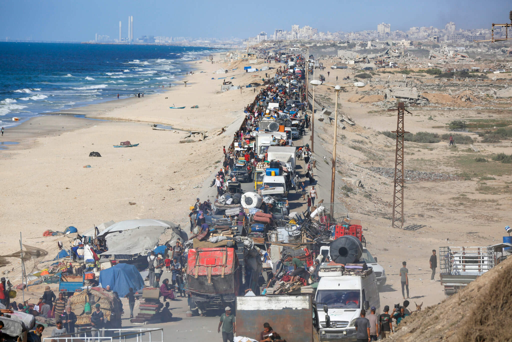 İsrail ordusunun Gazze Şeridi’nin kuzeyindeki bölgelere yönelik yoğun saldırıları ve zorunlu tahliye uyarıları nedeniyle Filistinliler, yanlarına alabildikleri eşyalarla araçlarıyla veya yaya olarak Reşid Caddesi üzerinden Gazze’nin güneyine doğru göç etmeye devam ediyor. ( Stringer – Anadolu Ajansı )