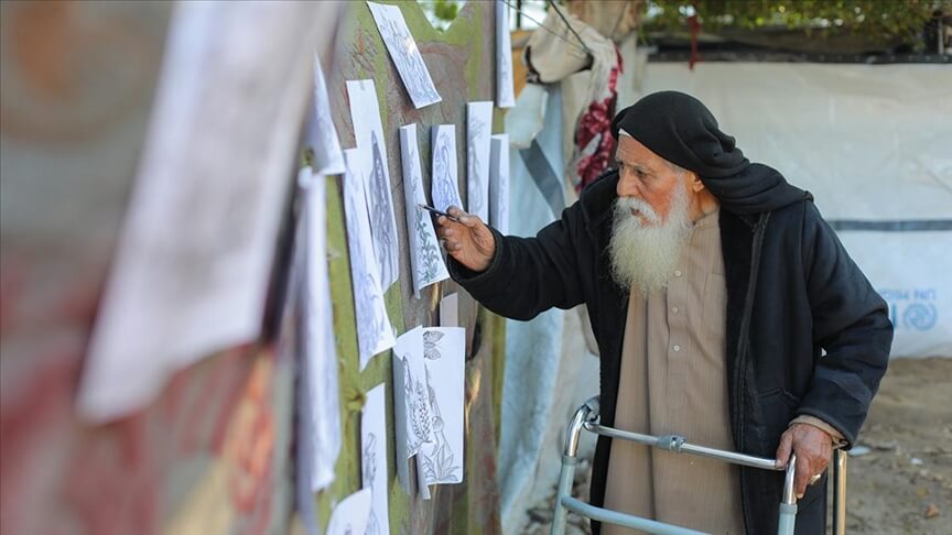 İsrail saldırılarında 3 oğlunu kaybeden 80 yaşındaki Gazzeli ressam, acısını sanata yansıtıyor