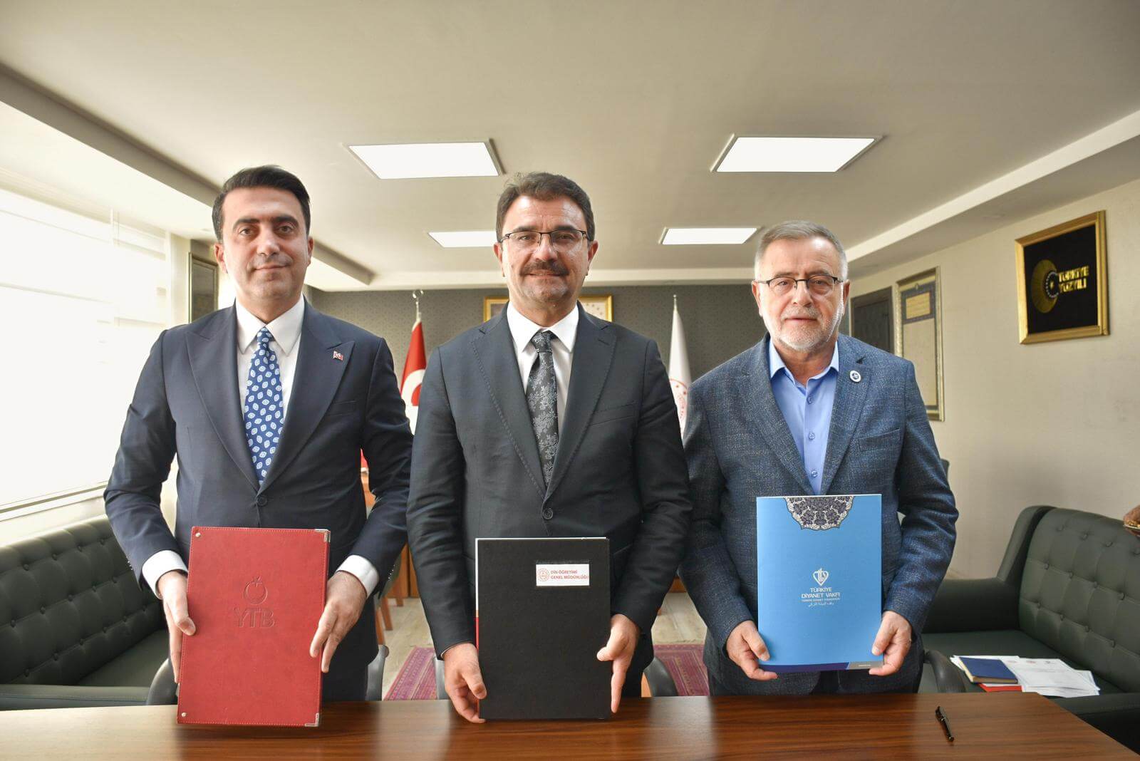 Uluslararası Anadolu İmam Hatip Liseleri İş Birliği Protokolü’ne imzalar, YTB Başkanı Abdulhadi Turus, MEB Din Öğretimi Genel Müdürü Dr. Ahmet İşleyen ve TDV Genel Müdürü İzani Turan tarafından atıldı. Törende YTB Başkan Yardımcısı Murat Kazancı, MEB Din Öğretimi Genel Müdürlüğü Eğitim Politikaları Daire Başkanı Mustafa Yıldız ve TDV Eğitim ve Kültür Hizmetleri Müdürü Esen Sezen Kılıç da hazır bulundu