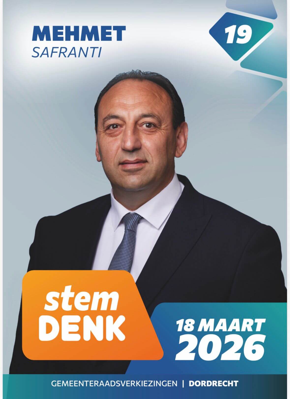 DENK partisinden Dordrecht Belediye Meclis üyesi olan Mehmet Safranti, yeniden belediye meclisi için aday olduğunu açıkladı. Safranti daha önce dört yıllık görev süresinin ardından bir süre ara vererek eyalet (provinciale) siyasetine odaklanmayı planladığını belirtmişti. Ancak parti tabanı ve parti yönetiminden gelen yoğun talep üzerine yeniden aday olmaya karar verdi.
