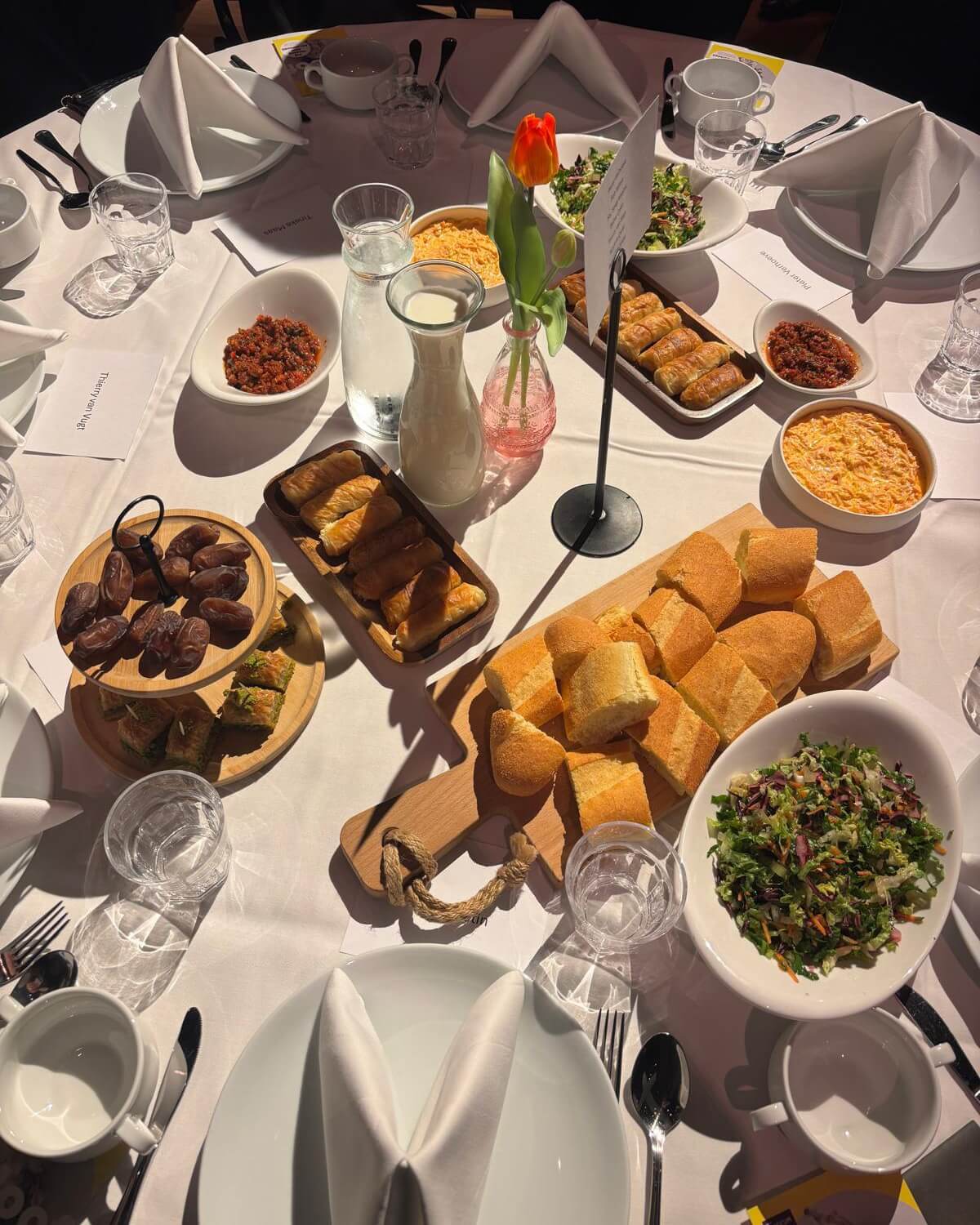 Gece boyunca konuklara Türk mutfağının zengin lezzetleri ikram edildi. Özellikle Türk hanımları tarafından büyük emekle hazırlanan geleneksel yemekler davetlilerden tam not aldı. Başbakan Jetten de mutfağa giderek yemeklerin hazırlanmasında emeği geçen kadınlara bizzat teşekkür etti ve onları tebrik etti.