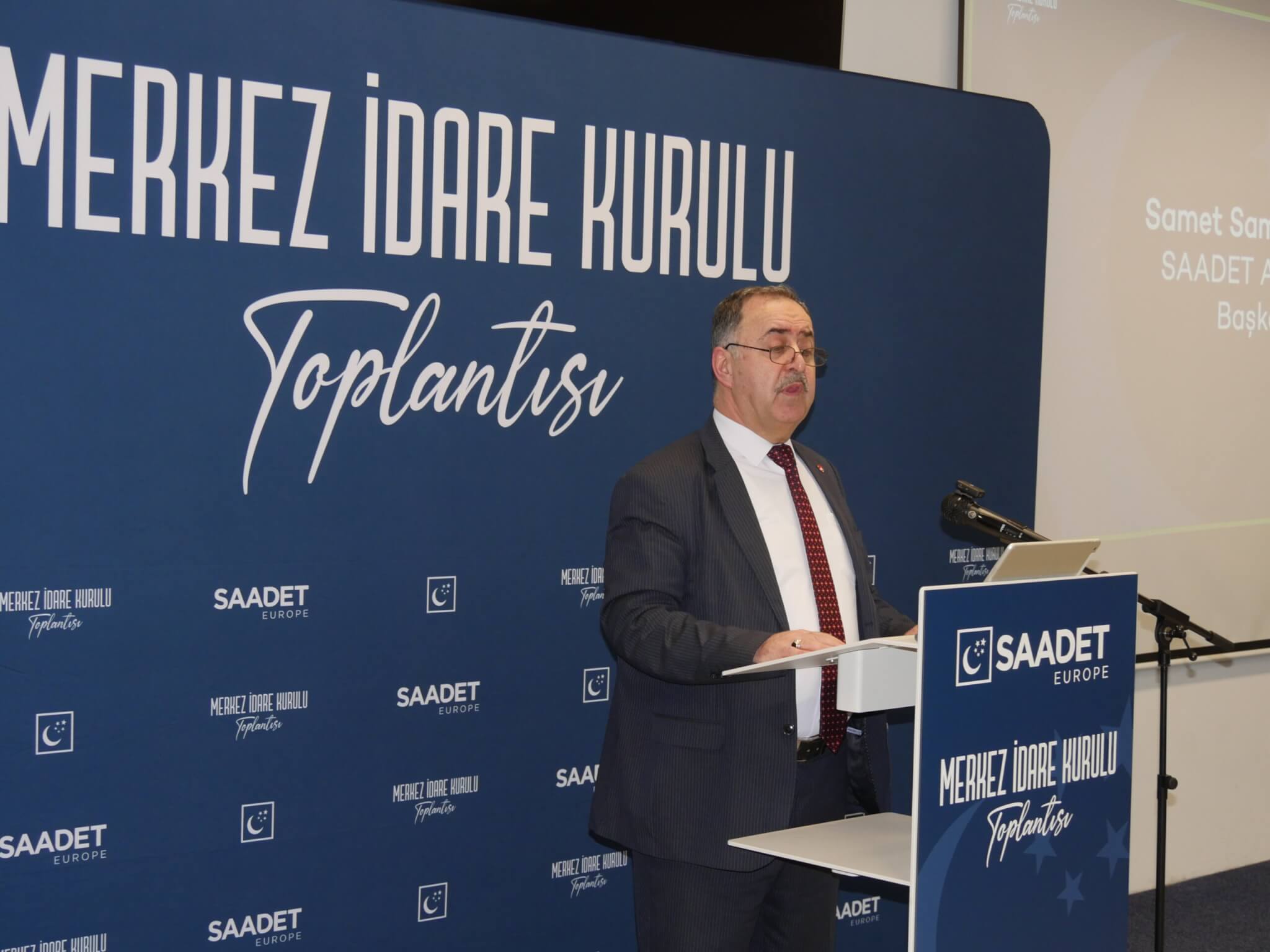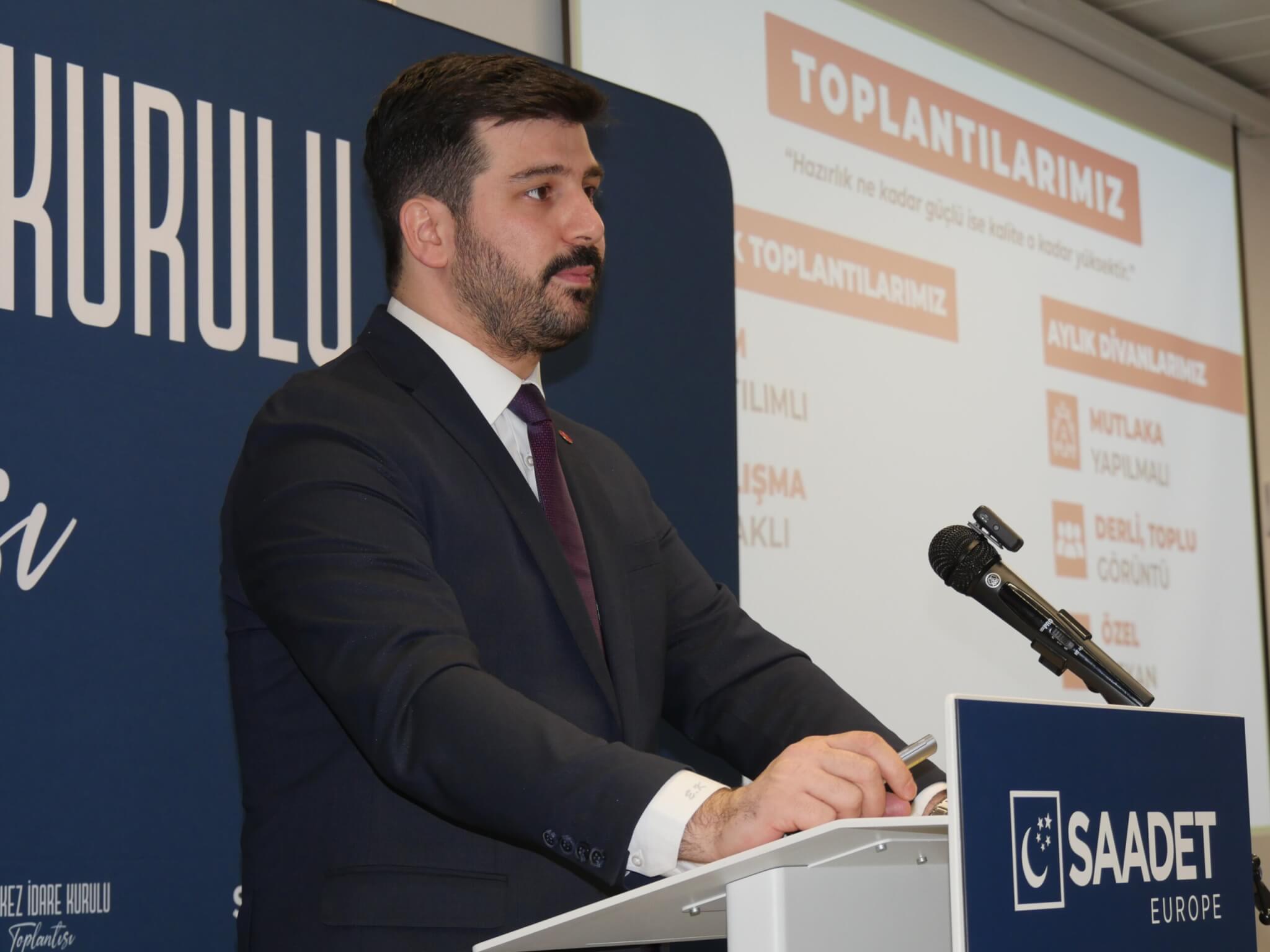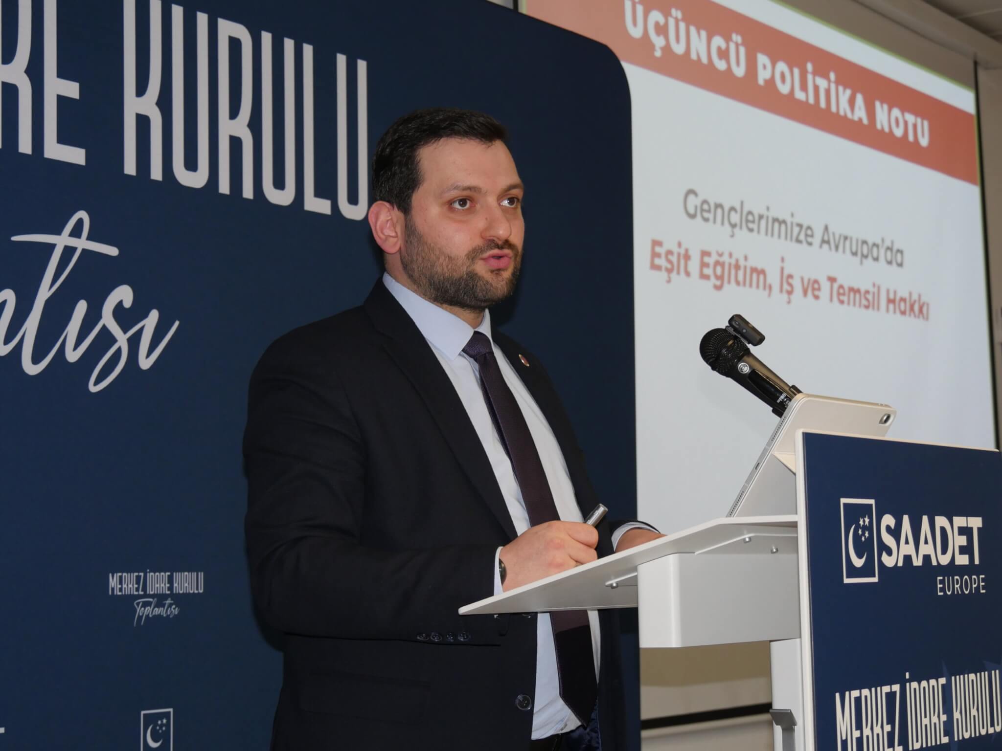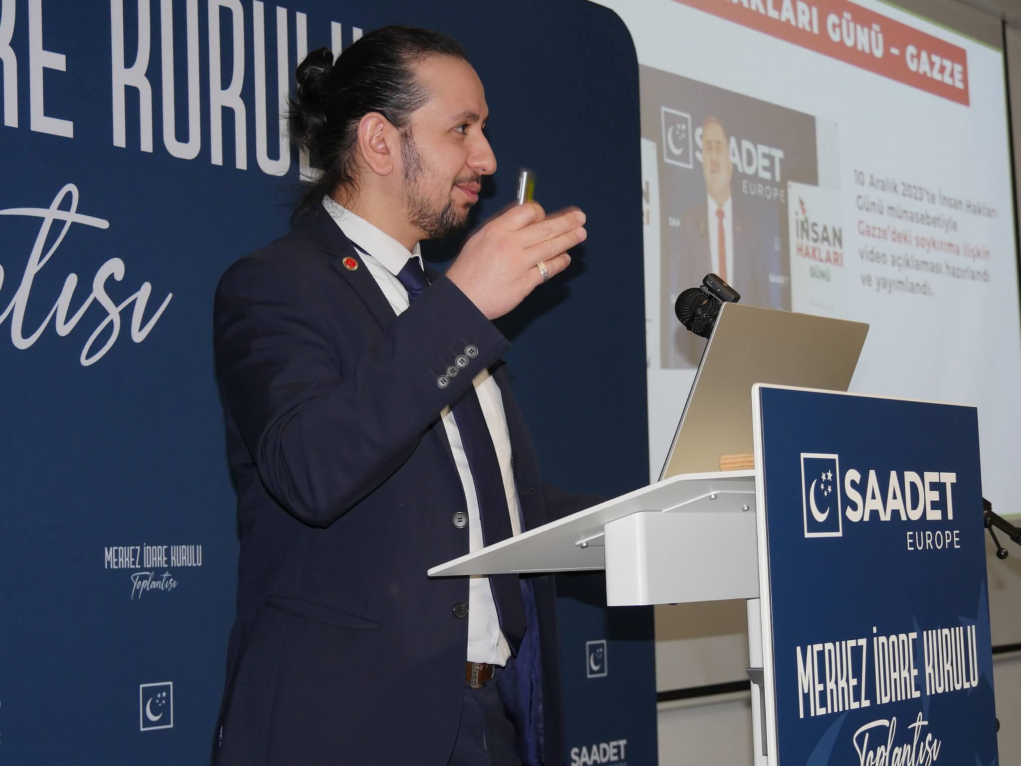 Birim sunumlarının ardından kürsüye gelen Saadet Avrupa Başkanı Samet Sami Temel, MİK açılış konuşmasında dünya gündemine dair önemli mesajlar verdi.