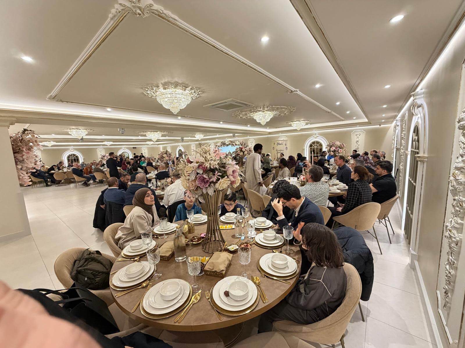 Etkinlikte misafirlere üç aşamalı bir iftar menüsü (başlangıç, ana yemek ve tatlı) ikram edilirken, isteyen katılımcılar için namaz kılma imkânı da sağlandı.