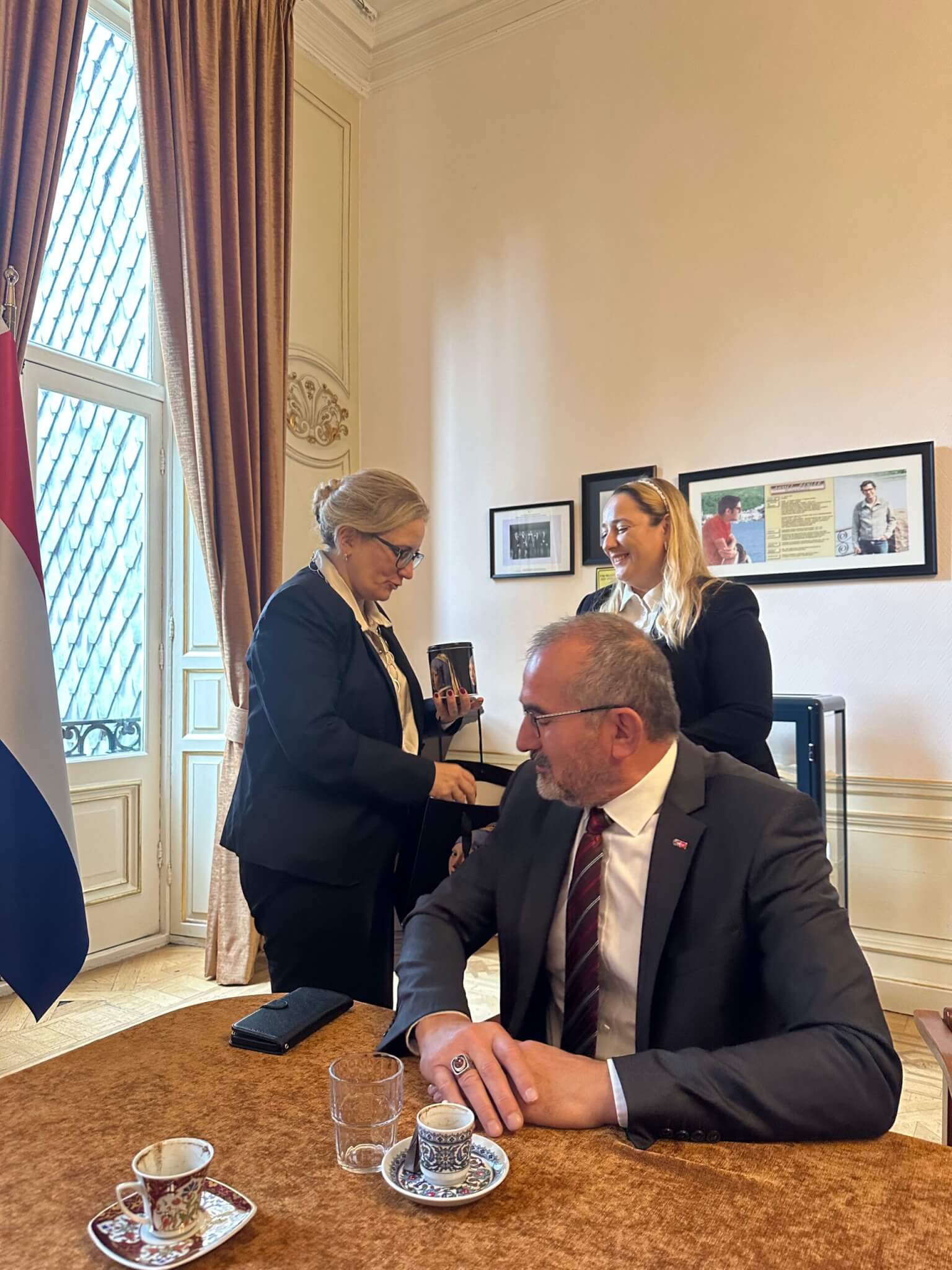 Büyükelçi Yazgan’nın ev sahipliği yaptığı toplantıya, TOVER Leiden Başkanı Durmuş Doğan, TOV Rotterdam Başkanı Tarık Saki, TOV Den Haag Başkanı Funda İleri, TOV Zoetermeer Başkanı Ceylan Dural, Leiden, Rotterdam, Den Haag ve Zoetermeer yöneticileri Savaş Akçay, Okan Erbil, Metin Altmışkara, Doğan Bağcı, Öznur Şahin, Lale Mammedova ve Lahey Ticaret Müşaviri Ömer İlhan katılım sağladılar.