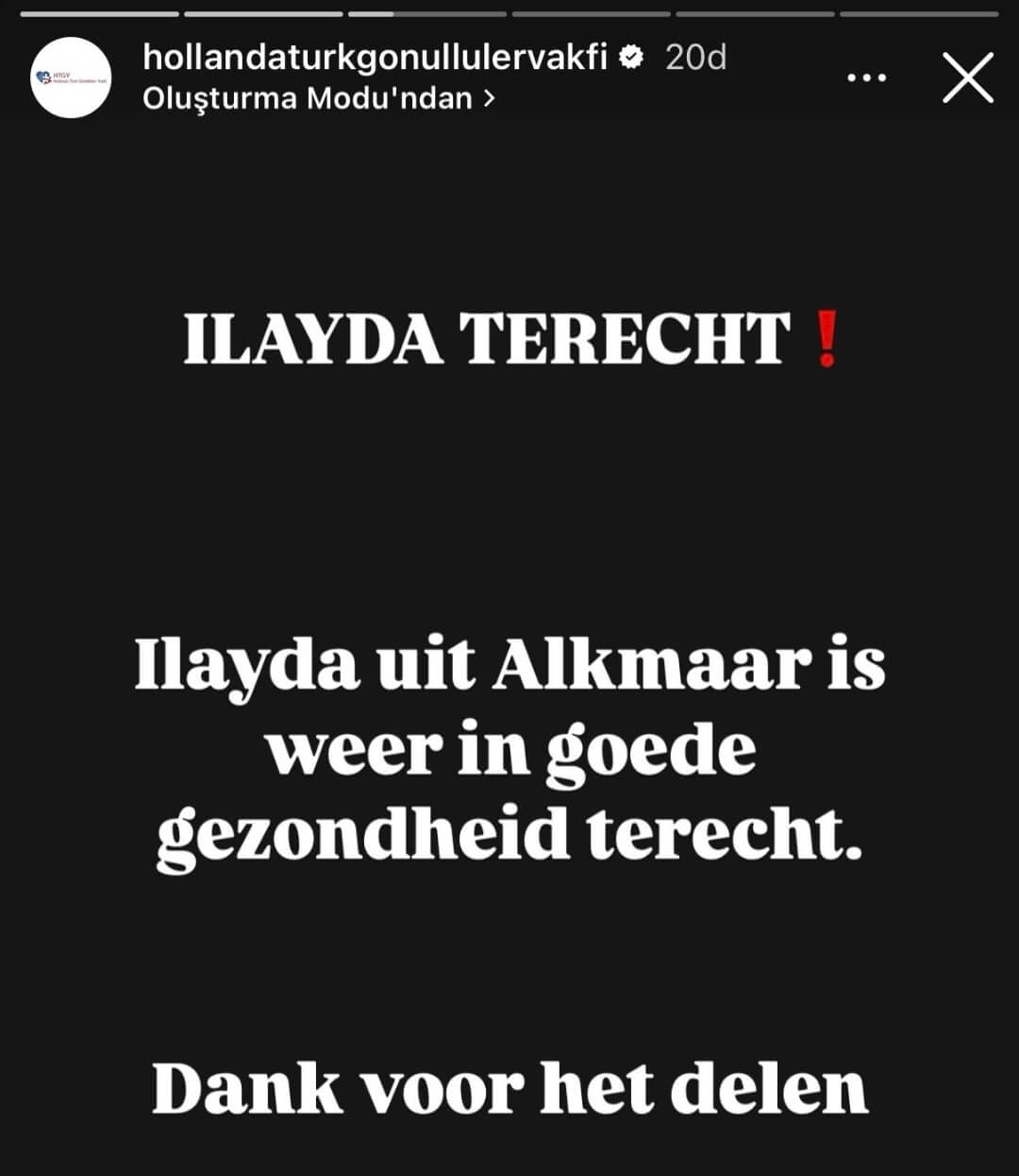 Geçtiğimiz hafta sonu Hollanda’da yaşayan Türk toplumunu derinden endişelendiren kayıp vakası, herkesin beklediği mutlu sonla noktalandı. **15 yaşındaki İlayda’nın sağlıklı bir şekilde bulunması**, sadece ailesini değil, onun için dua eden binlerce insanı da büyük bir sevince boğdu.